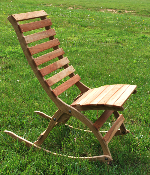 This fabulous rocker is made in the same enduring style as our small rocking chair, It's just made for a taller person in mind. If you're over 5' 6", this is the most comfortable rocker for you. Entirely made of hardwoods, this rocker is foldable for easy transport. Sturdy enough for home and camp use. Just like all of our hardwood chairs, the rocker is dipped in boiled linseed oil for long life. Seat width is 18", Back height is 26 1/2", Seat height is approximately 17".